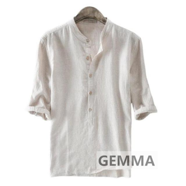 Tシャツ メンズ トップス リネンシャツ 五分袖 vネック メンズTシャツ 夏物 tシャツ 薄手 麻 カジュアル おしゃれ 欧米風 トップス 無地 父の日