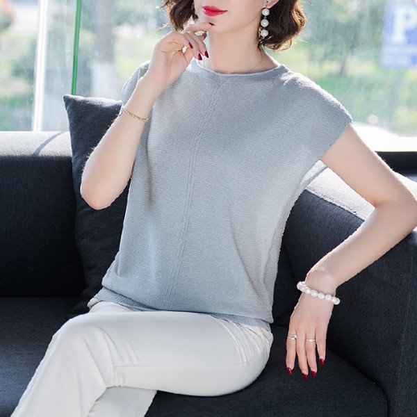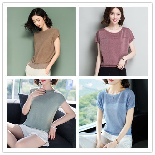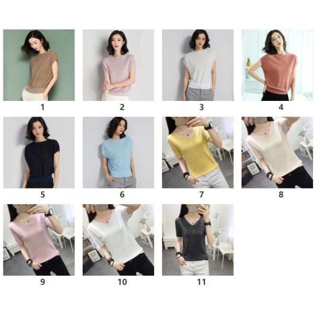 サマーニット セーター レディース トップス 春夏 半袖セーター カットソー 半袖tシャツ プルオーバー 無地 新作 2020 シンプル ドルマンス