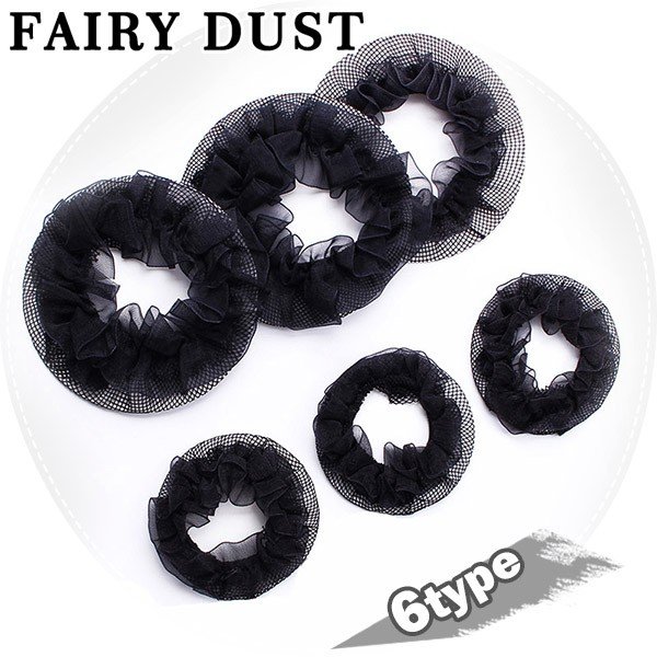 シニヨンネット (6枚セット ヘアピン付き) ヘアネット アシアナネット バレエ用品 お団子 まとめ髪 ウィッグ シニヨン ブラック
