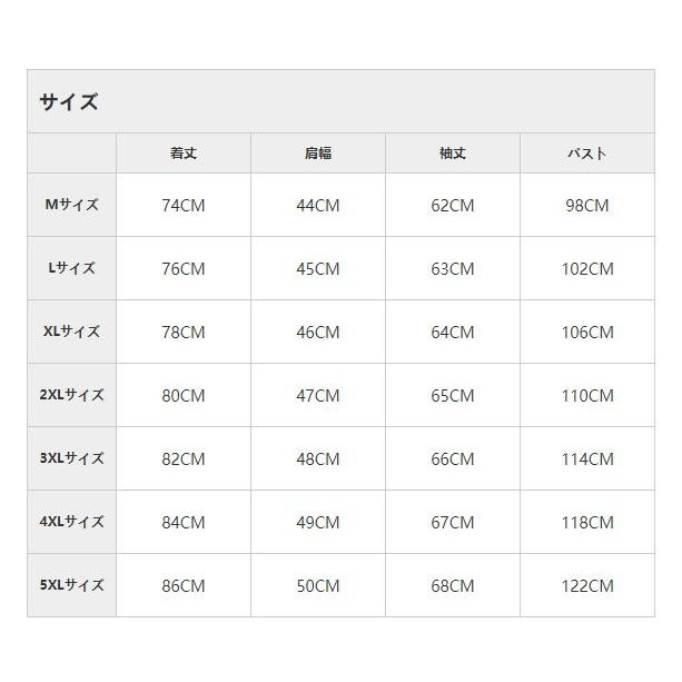 | サイズ | M L XL XXL 3XL 4XL 5XL |