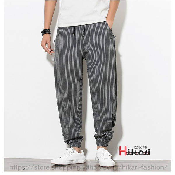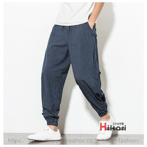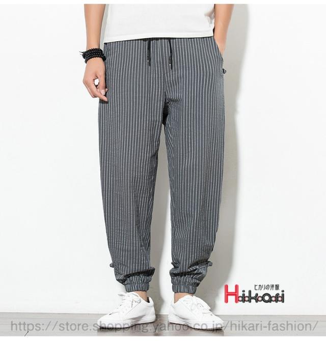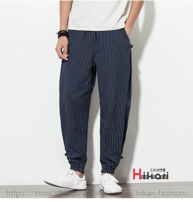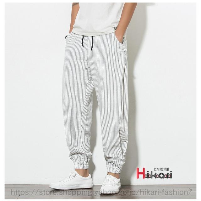 ジョガーパンツ メンズ ストライプパンツ ゆったり ウェストゴム エスニック ワイドパンツ カジュアル 綿麻素材