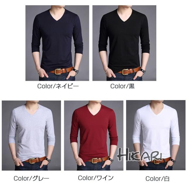 Tシャツ メンズ Vネック 無地 長袖 メンズtシャツ ロングtシャツ インナーシャツ カットソー 肌着 細身 春服