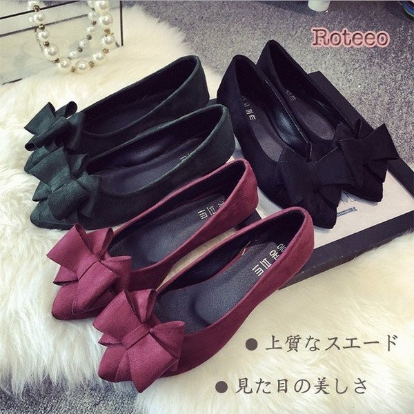 レディース 靴 パンプス リボン付 バイカラー ペタンコ 美脚 ラクチン ラウンドトゥ 低反発 歩きやすい クッション 期間限定 新作ポイント消化