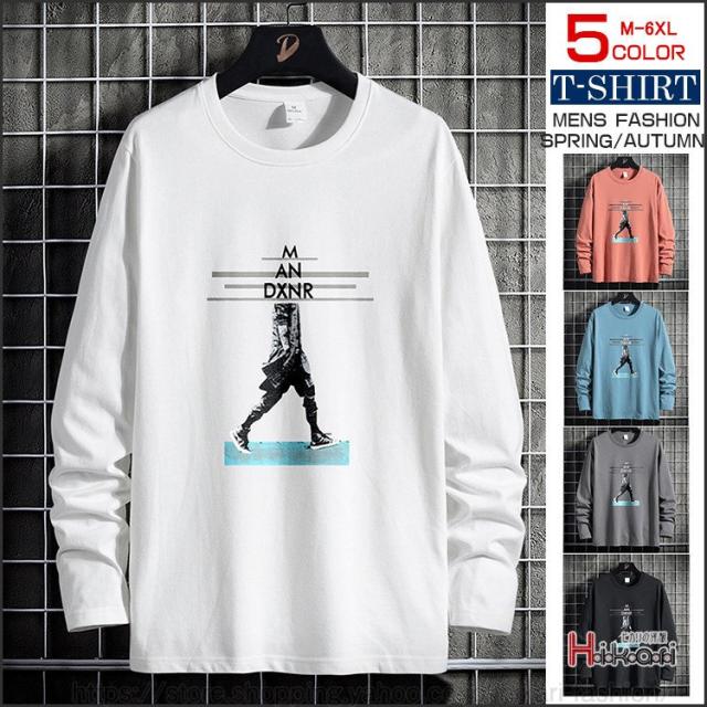 長袖Tシャツ ロングTシャツ メンズ Tシャツ クルーネック ロンT プリントTシャツ トップス 春物 カジュアル スリム