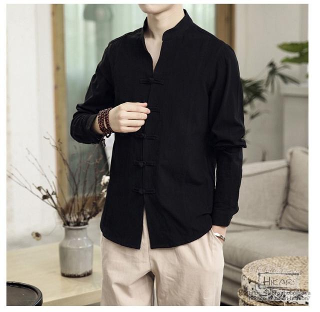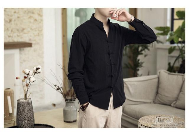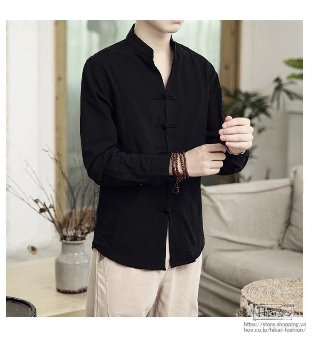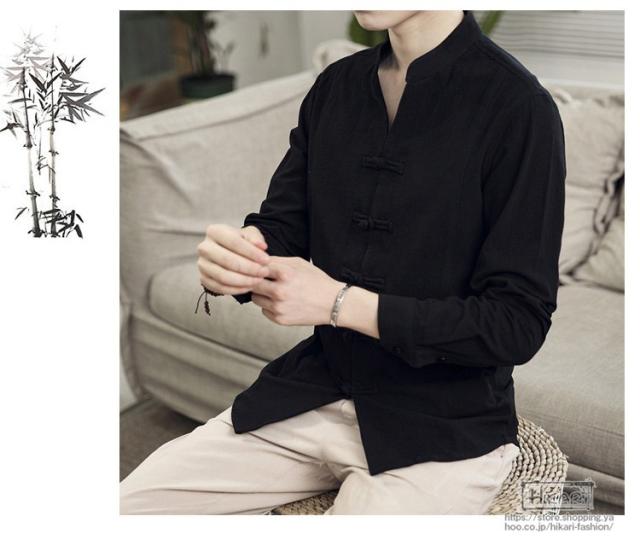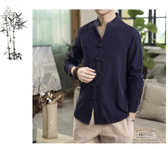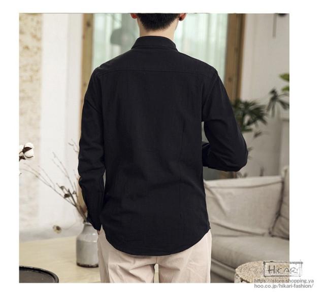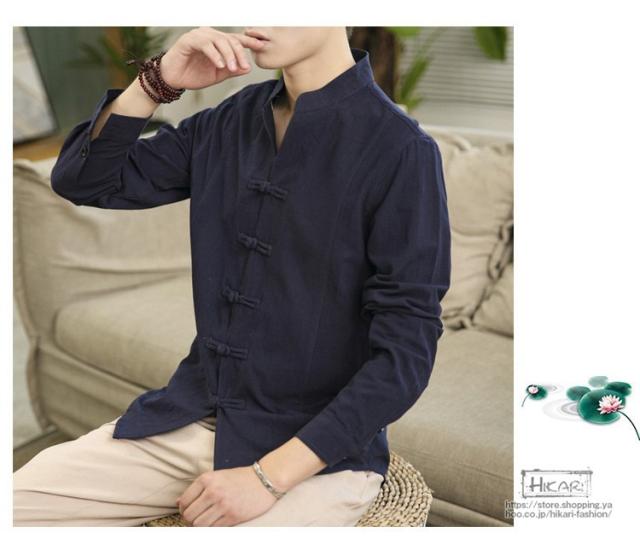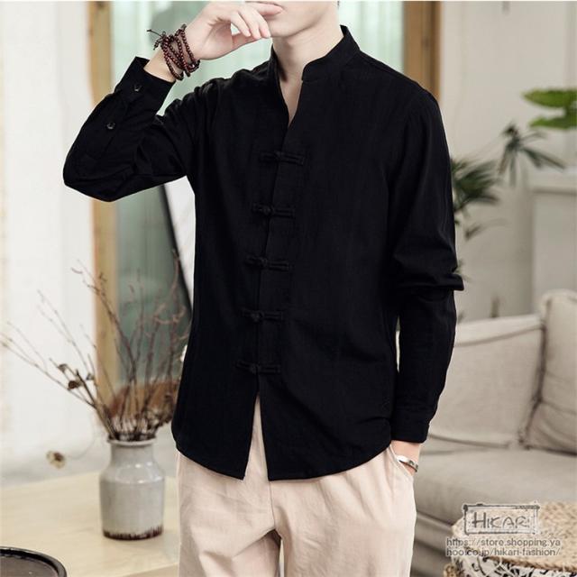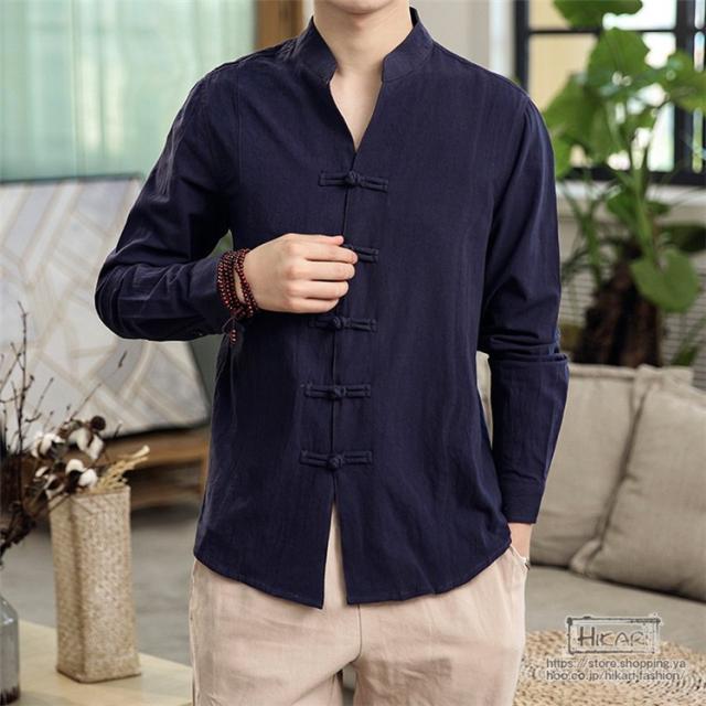 チャイナ風シャツ メンズ カジュアルシャツ 長袖シャツ 長袖 無地 立ち襟 シャツ チャイナ風 2021 父の日 プレゼント