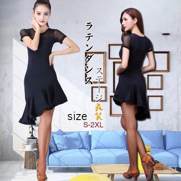 レディースダンス衣装 ラテンダンス衣装 社交ラテン フィッシュテールスカート ワンピース ラテンドレス ステージ衣装 ダンスウェア おしゃれ