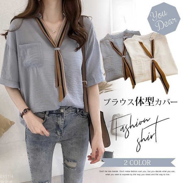 ブラウス シャツ レディース 夏 ネクタイ付き トップス コーディネート フォーマル OL通勤 体型カバー 大人 着痩せ ゆったり おしゃれ