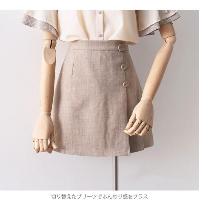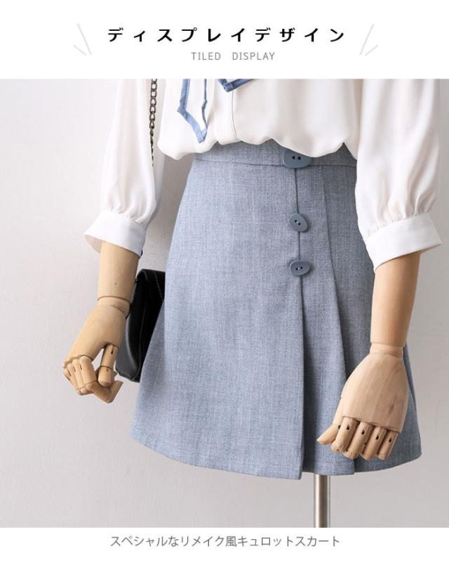 リメイク風スカート レディース キュロット キュロットスカート ミニスカート ショート丈 ハイウエスト 裏地付き プリーツ 切り替え Aライン 夏新作