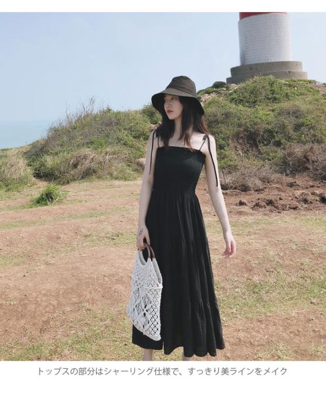 ワンピース レディース キャミソールワンピース マキシワンピース ロングワンピース フレアワンピース シャーリング ボートネック ふんわり お洒落