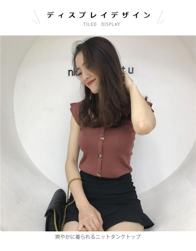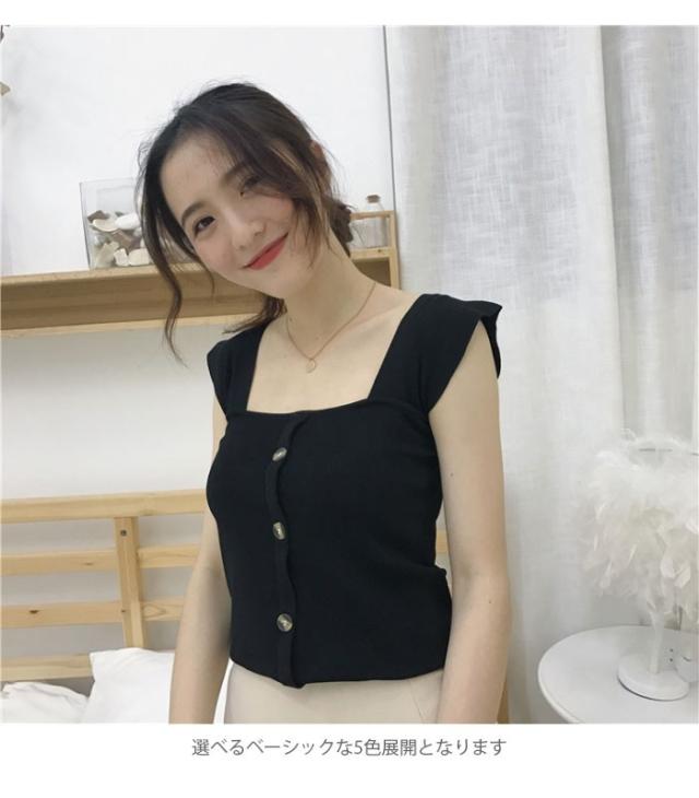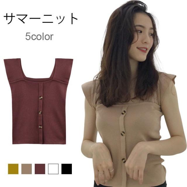 サマーニット レディース タンクトップ ニットタンク ニットトップス ニットタンクトップ リブニット スクエアネック ノースリーブ リブ編み トップス