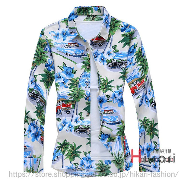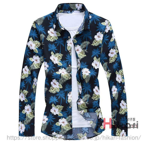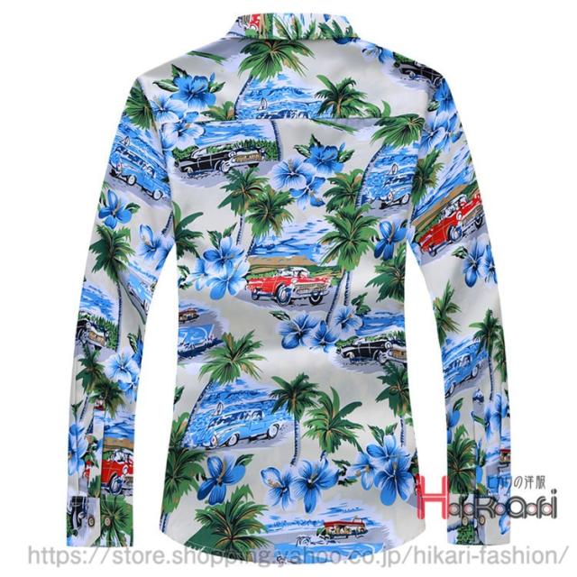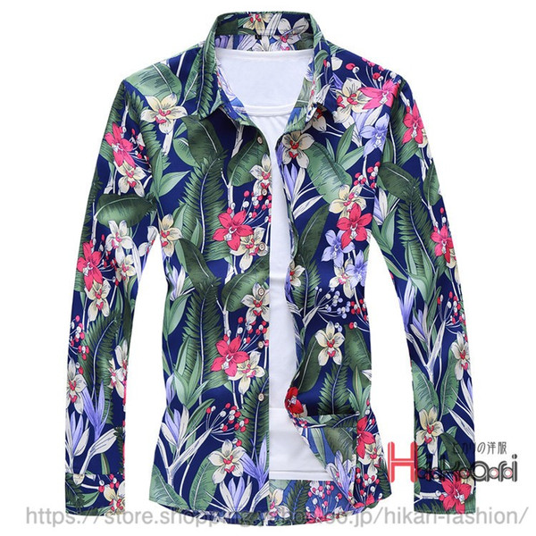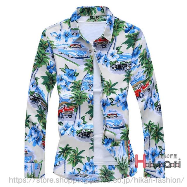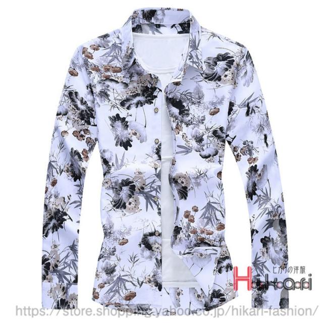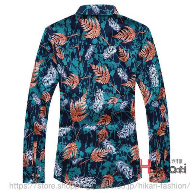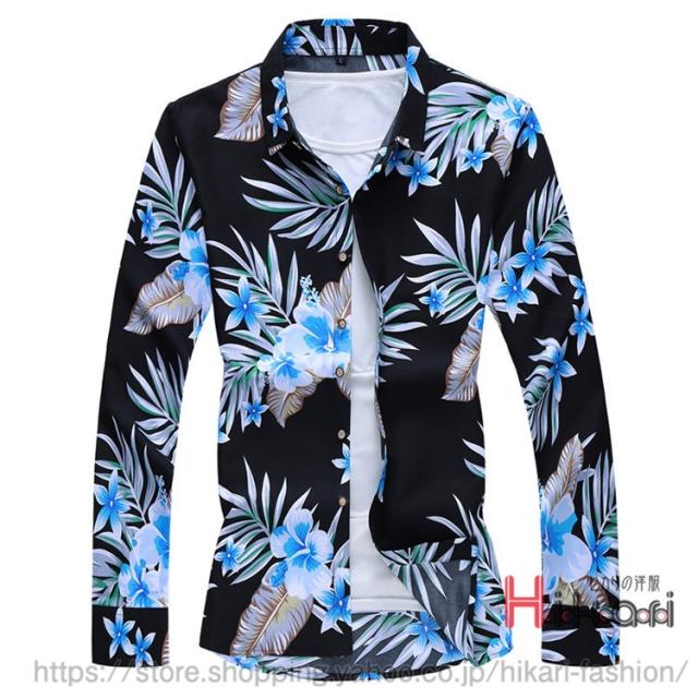 柄シャツ メンズ アロハシャツ 長袖シャツ カジュアルシャツ 和柄 花柄 ボタニカル柄 トロピカル 長袖 総柄