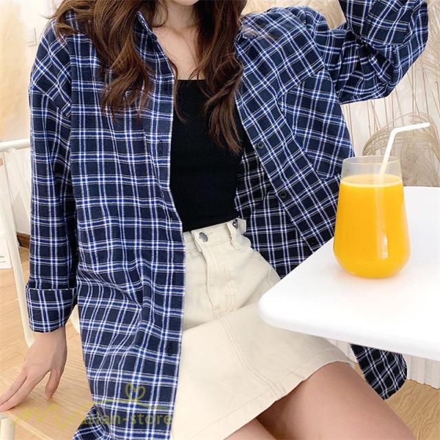 ライトアウター シャツ レディース チェック柄 長袖 ロング丈 ロンシャツ 秋服 コーデ きれいめ 定番 着痩せ 細身 着回し フォール トップス 長袖シャツ 女性着