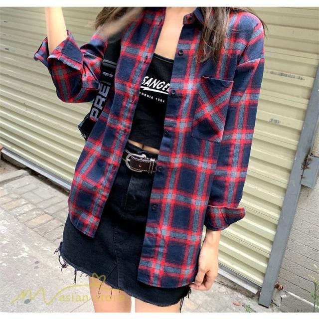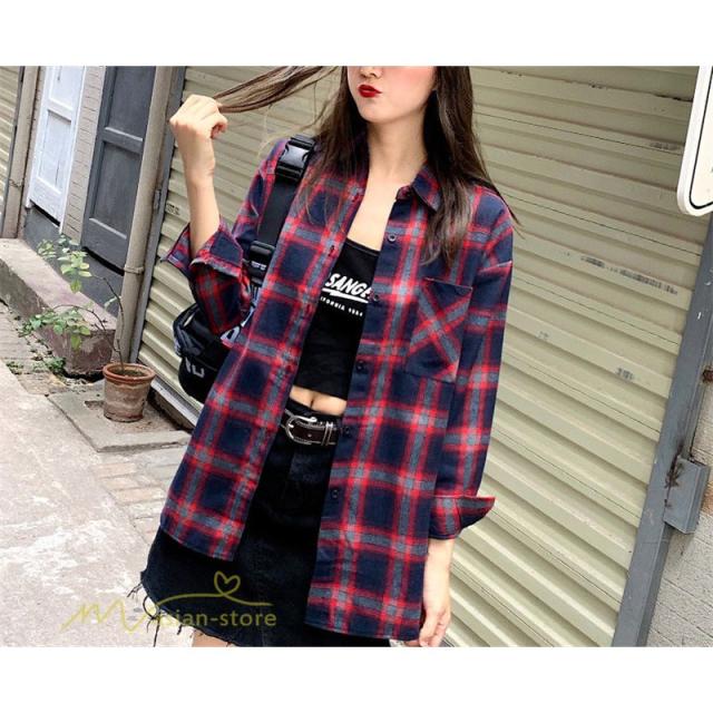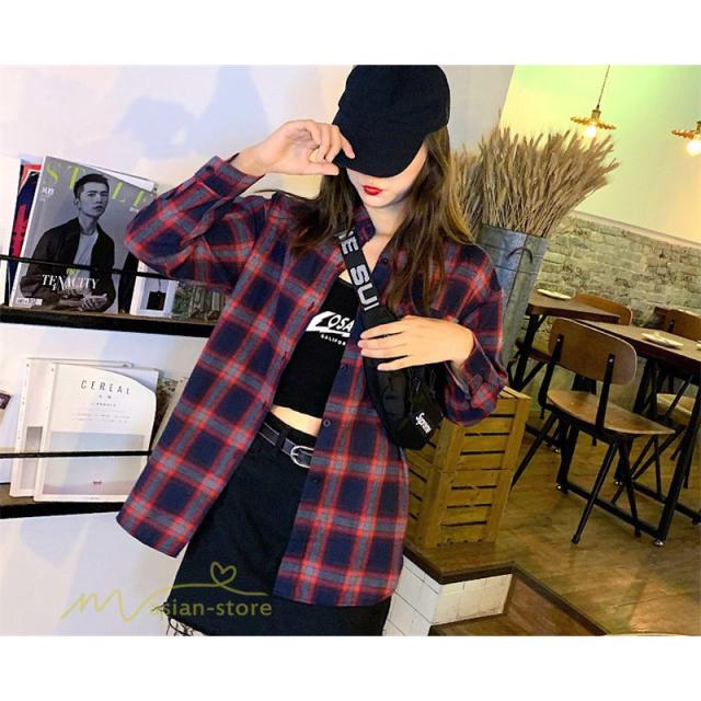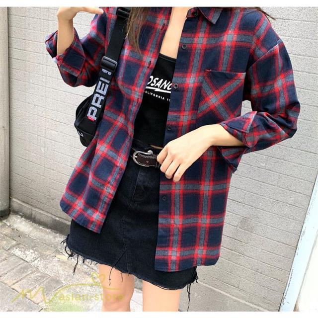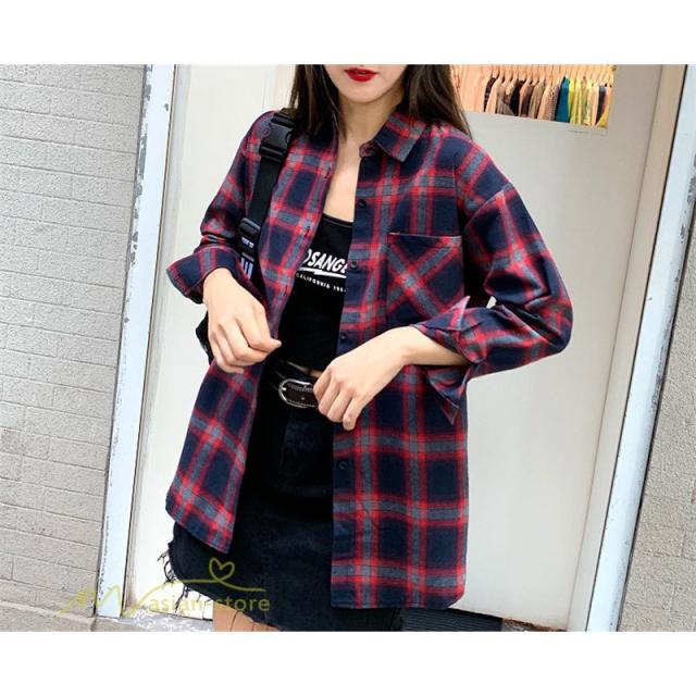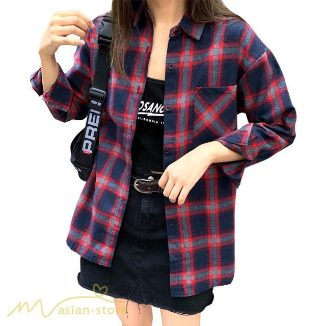 ロンシャツ レディース チェック柄 トップス シャツ 韓国風 ワイドシャツ トップス 長袖 フリーサイズ おしゃれ 日常感 長袖シャツ シャツ ライトアウター 上品