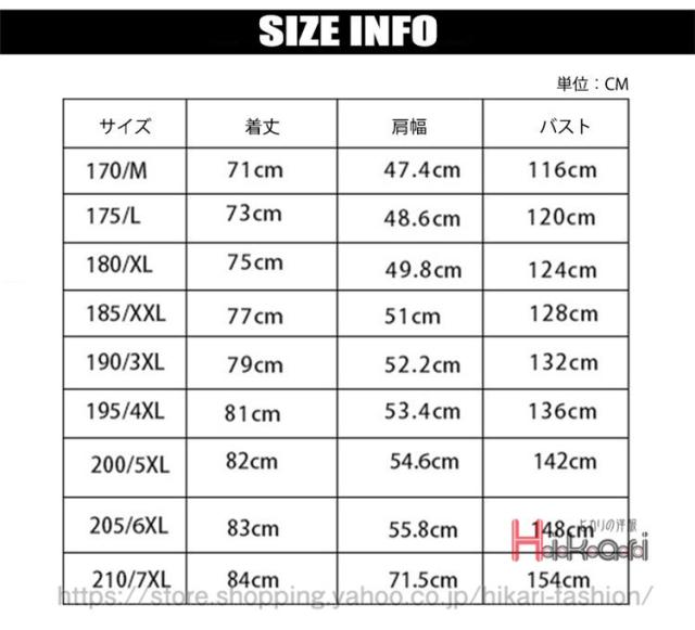 | サイズ | M L XL 2XL 3XL 4XL 5XL 6XL 7XL |