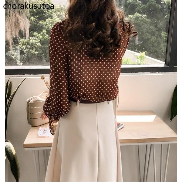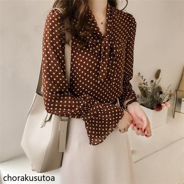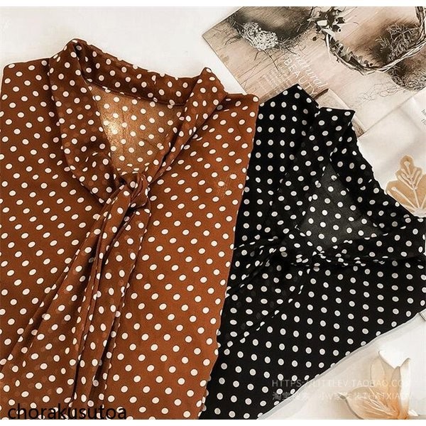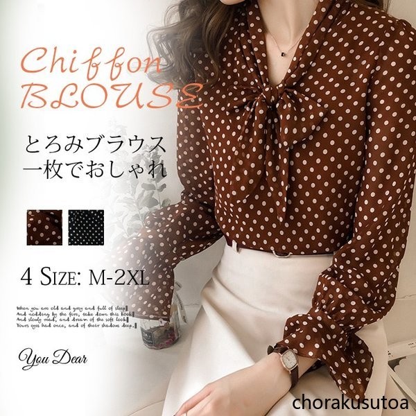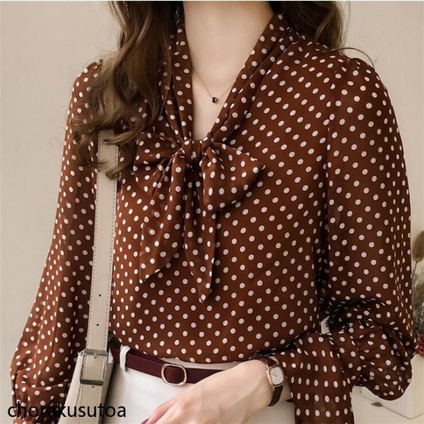 ブラウス レディース おしゃれ トップス とろみブラウス リボン付き 水玉 可愛い シフォンブラウス 長袖 春ブラウス 大きいサイズ 30代 40代 着痩せ 通勤 OL