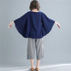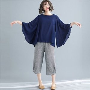 シフォンブラウス レディース 七分袖 シャツ 丸首 ブラウス 無地 フレアスリーブ 夏ブラウス ゆったり 大きいサイズ 体型カバー おしゃれ 夏物 新作 送料無料