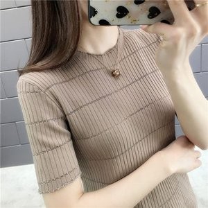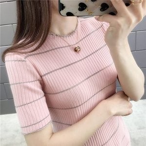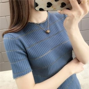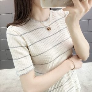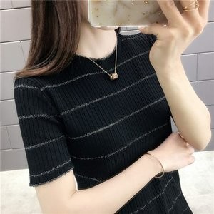 Tシャツ tシャツ レディース 半袖tシャツ 半袖 丸首 ボーダー柄 夏tシャツ ニットTシャツ 細身 薄手 おしゃれ カジュアル 着痩せ 夏物 新作 送料無料