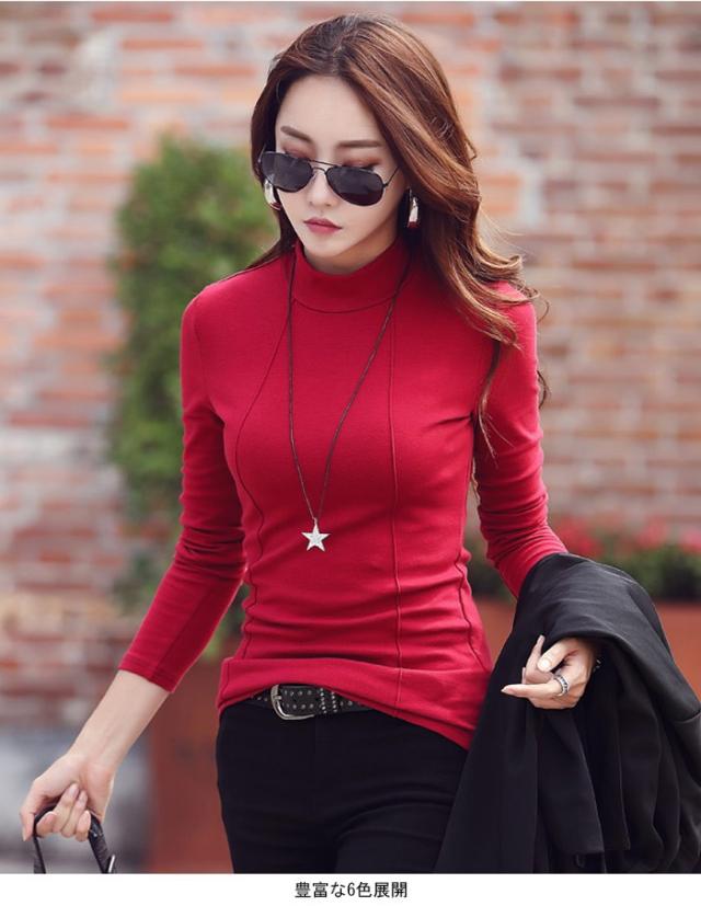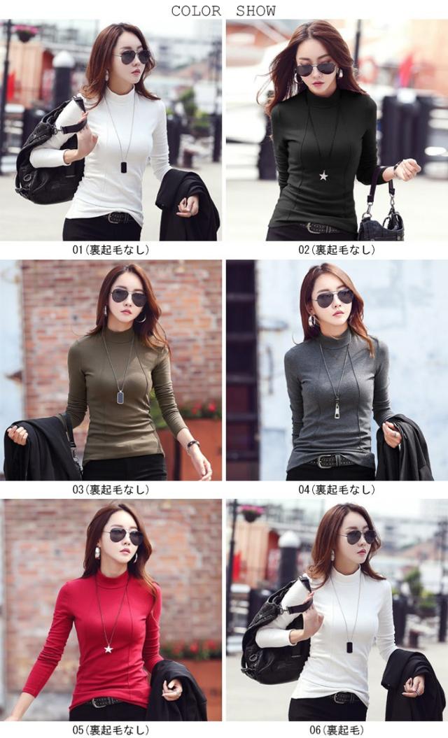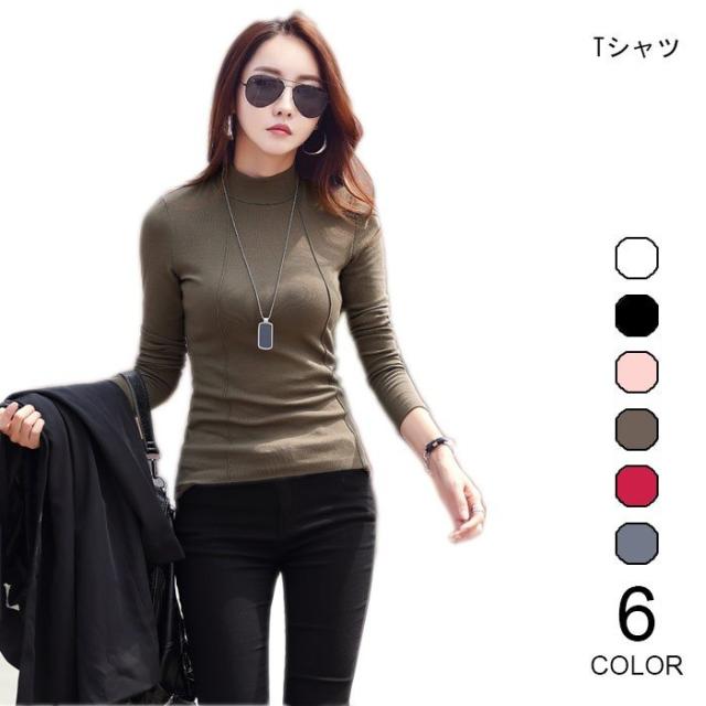 Tシャツ レディース 長袖 カットソー ハイネック 無地 裏起毛 シンプル カジュアル 定番 万能アイテム プルオーバー 秋新作