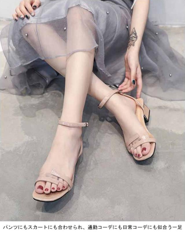サンダル レディース ストラップサンダル ハイヒール ミュール スクエアトゥ エナメル くつ 女性用 シューズ 夏物 オシャレ 靴 通勤