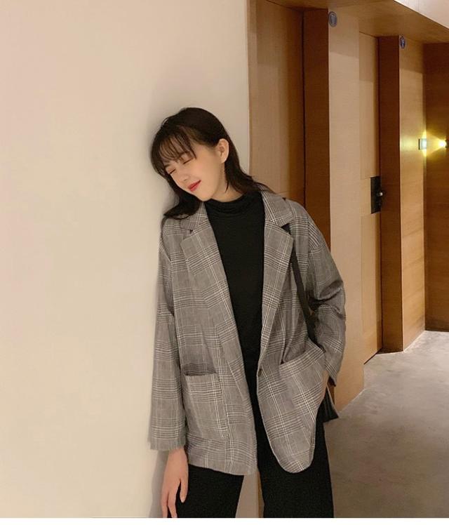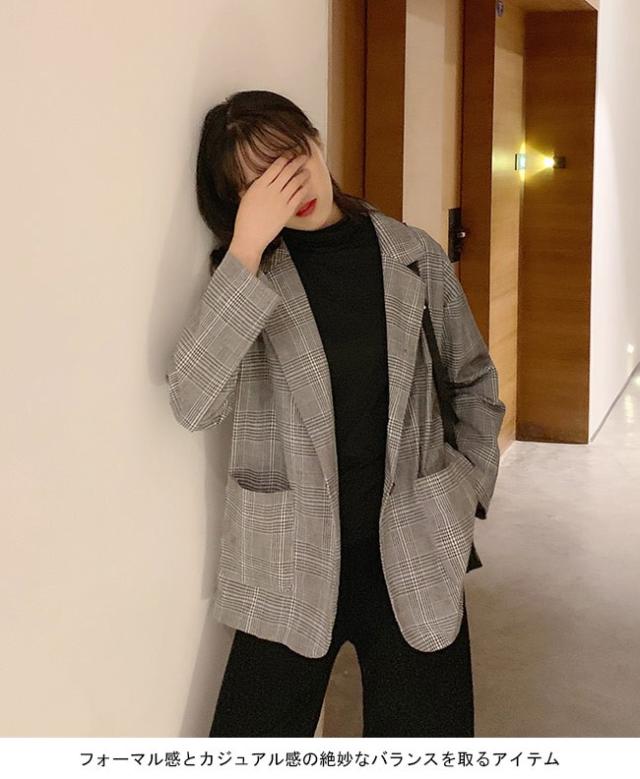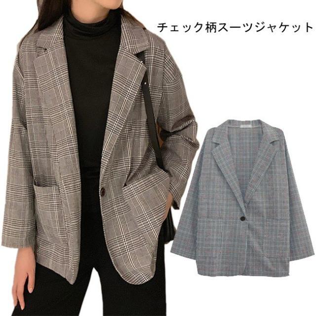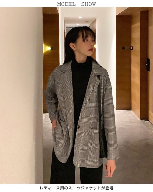 スーツジャケット テーラードジャケット チェック柄 レディース ブレザー グレンチェック ゆったり 女性 ジャケット アウター 春秋 スーツ