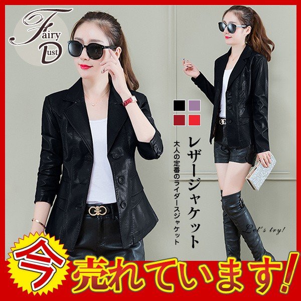 レザージャケット レディース ライダースジャケット トップス フェイクレザー 長袖 シンプル 女性大人気 新作 アウター 春