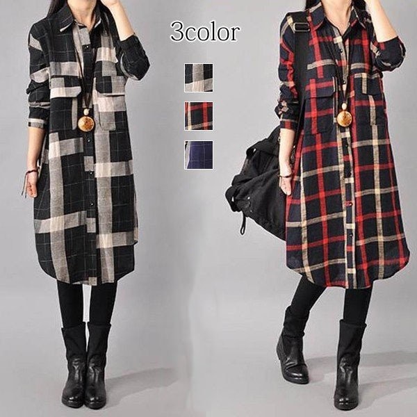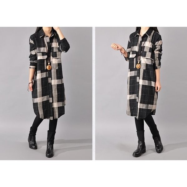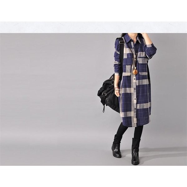 ワンピース チェック柄ワンピース シャツワンピース ひざ丈ワンピース ゆったり