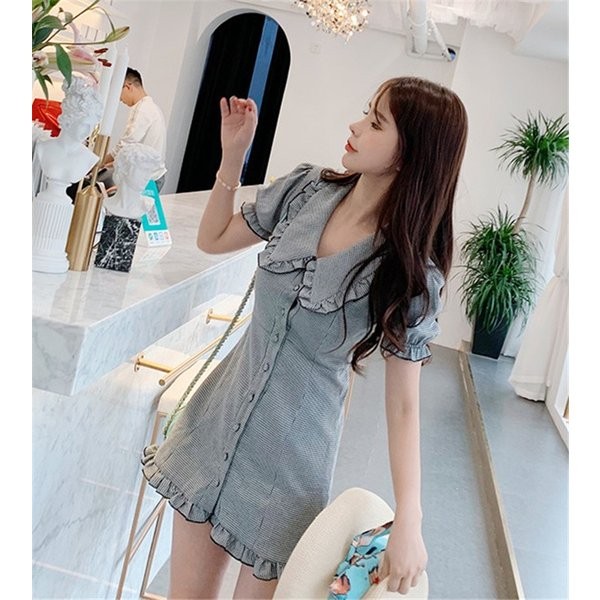 レディース ワンピース ナポレオンカラー ハイウエスト キレイめ スリムフィット ミニ丈ワンピース