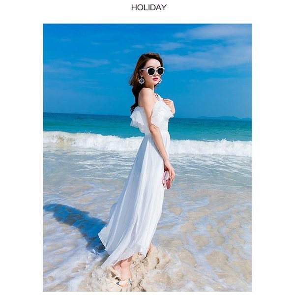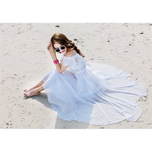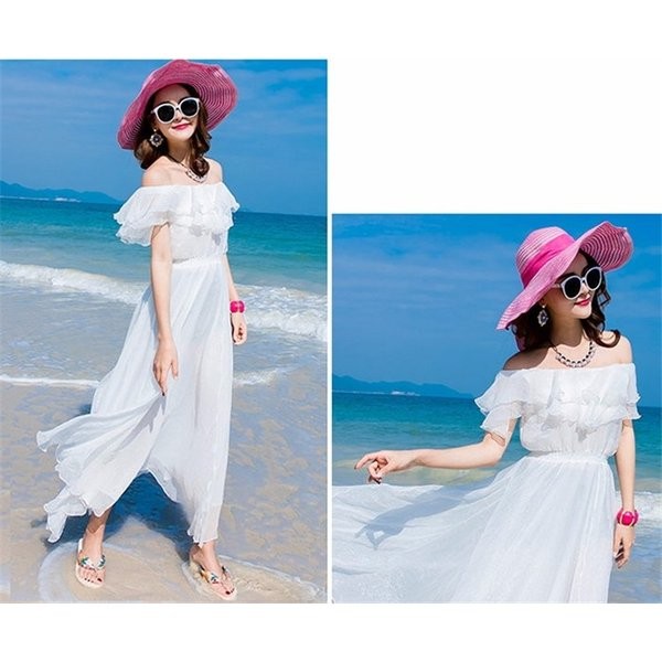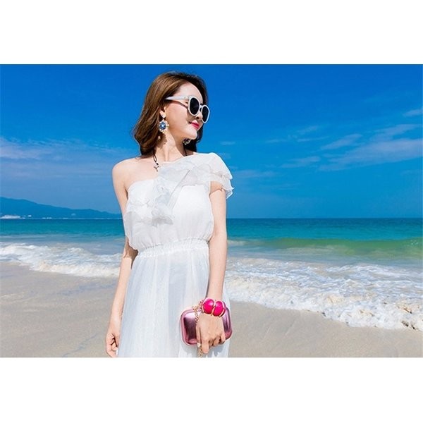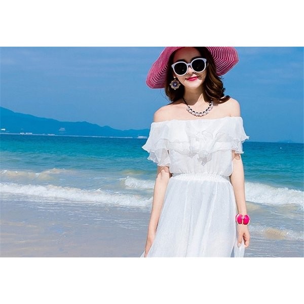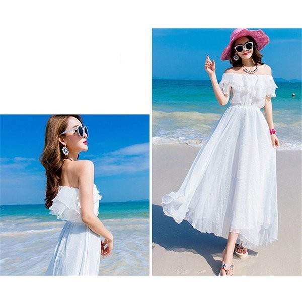 リゾートワンピ ハワイ リゾートワンピース ロング丈 マキシワンピース レディース ボヘミア風 無地 オフショル ビーチ オフショルダー