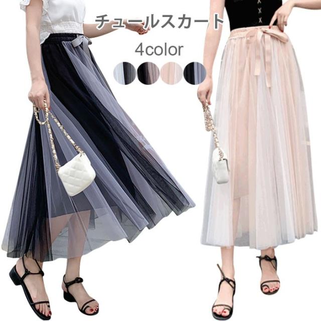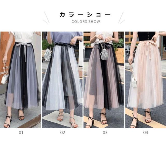 チュールスカート レディース シフォンスカート マキシスカート ロングスカート プリーツスカート 切り替え 裏地付き 透け感 ふんわり 春夏 夏新作