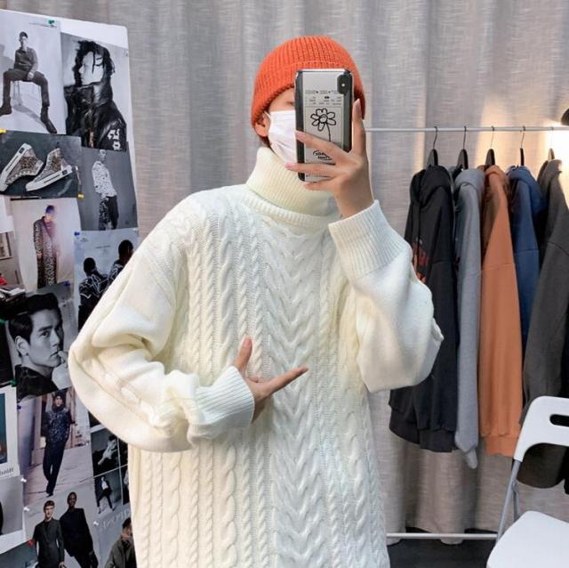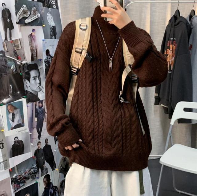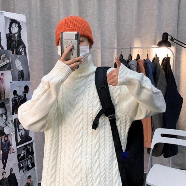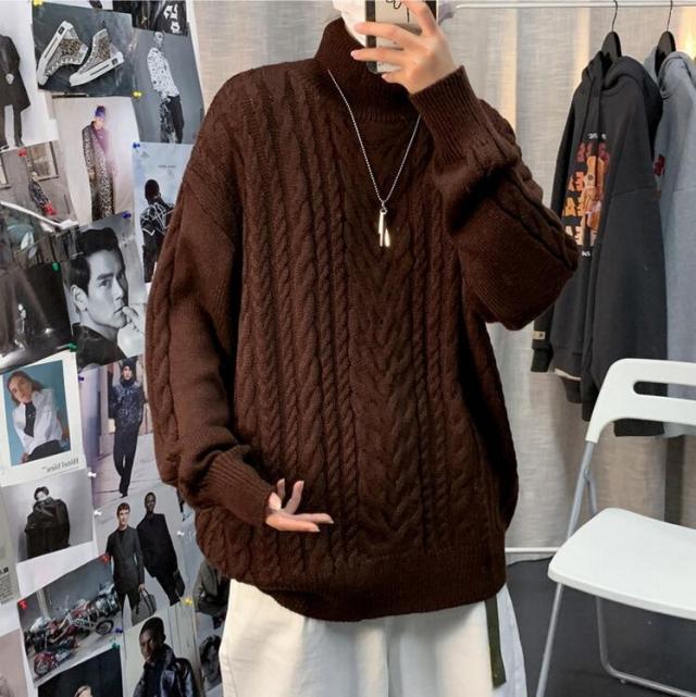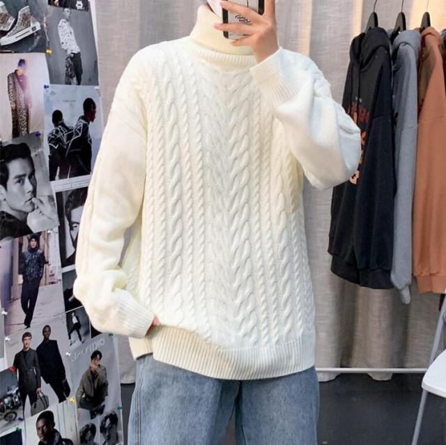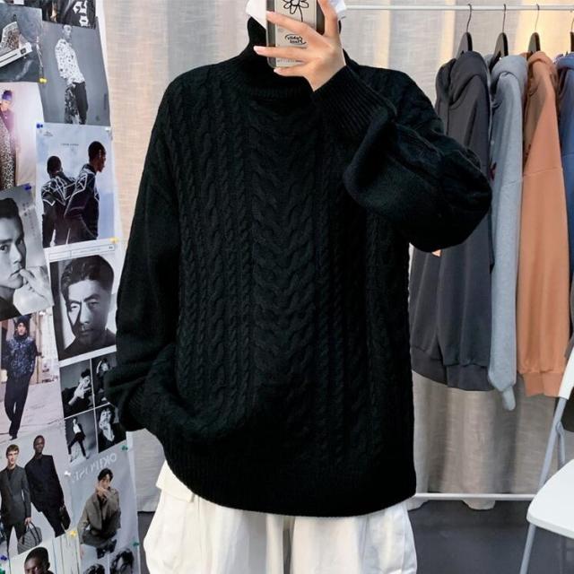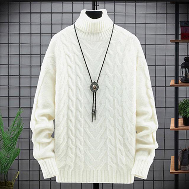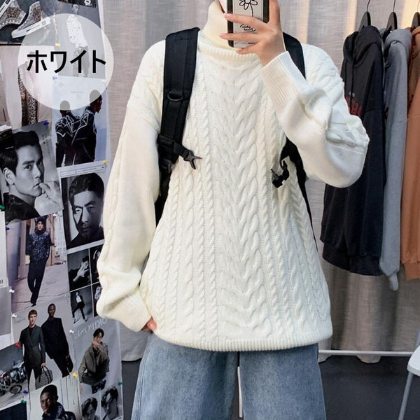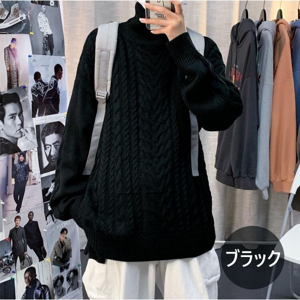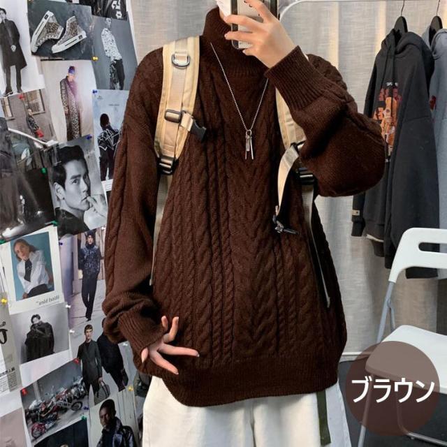 ニットセーター メンズ 長袖セーター ハイネック 防寒セーター ケーブル編みゆったりセーター 秋冬 カットソー 通学通勤 ビジネス カジュアルニットトップス