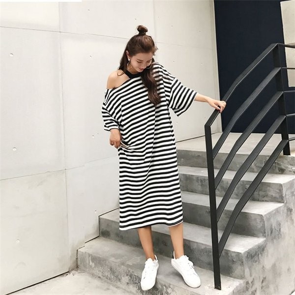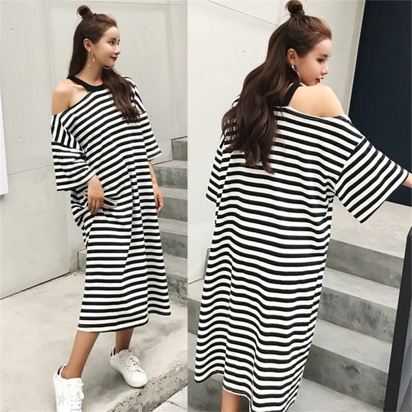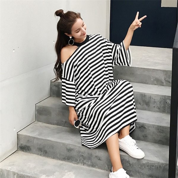 レディース ワンピース ボーダー柄 ゆったり 大きいサイズ オフショルダー マキシワンピ