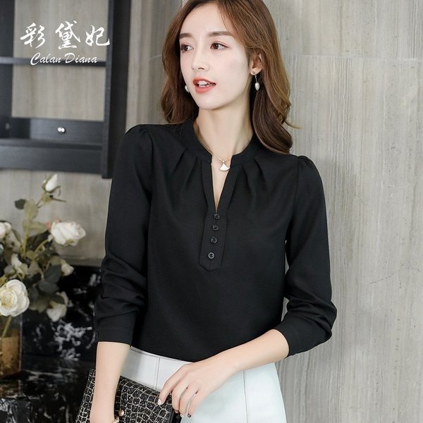 ブラウス レディース シフォンシャツ トップス 長袖 透け感 ノーカラー 無地 インナー カジュアル フォーマル ビジネス オフィス 通勤 OL