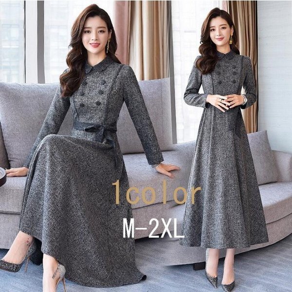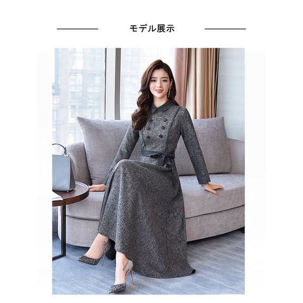 ワンピース レディース マキシワンピース Aライン リボン付き ロング丈 エレガント 30代/40代 春秋 ドレス上品 長袖 着痩せ オシャレ 人気 新作