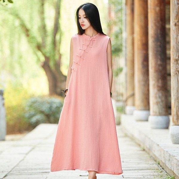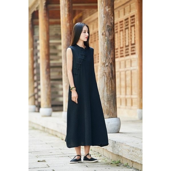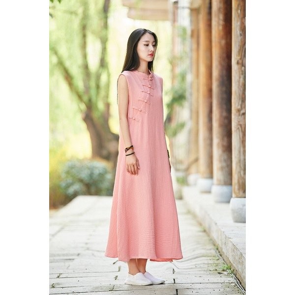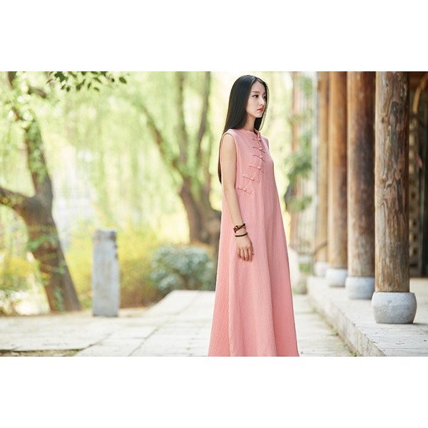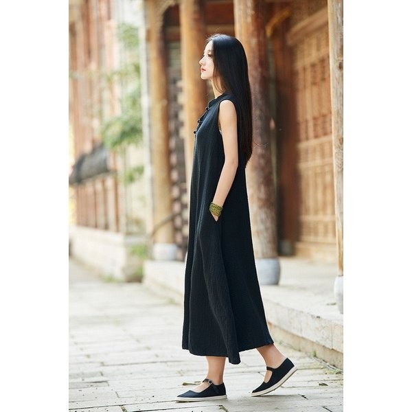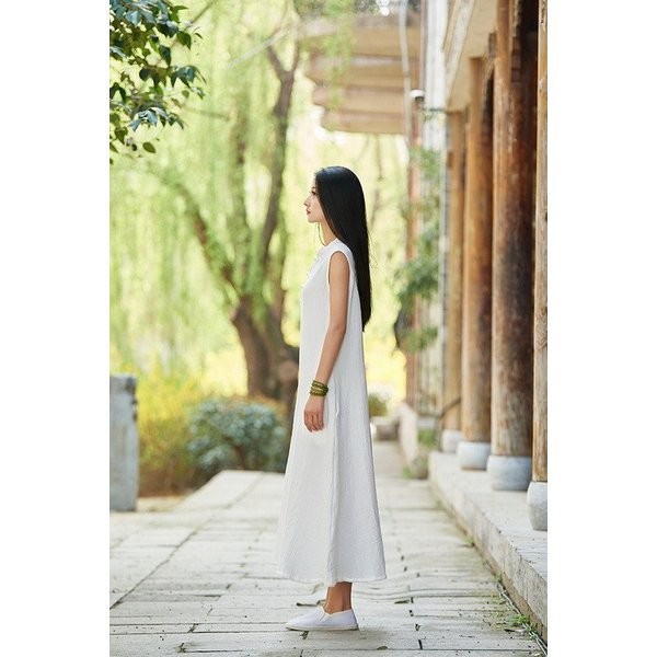 ワンピース レディース 春夏 半袖 ノースリーブ 麻繊維 ロングワンピース マキシ丈ワンピース 無地 結婚式 披露宴 二次会