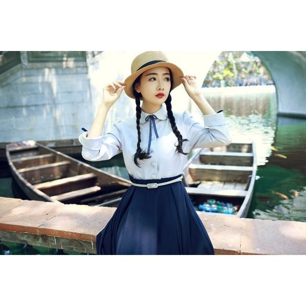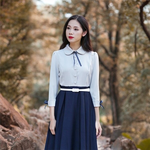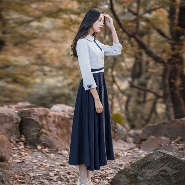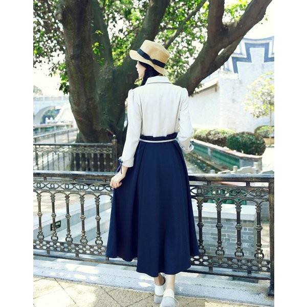 クラシックワンピース 切り替え ロングワンピ 長袖 マキシワンピース カレッジ風 森ガール エレガント 上品