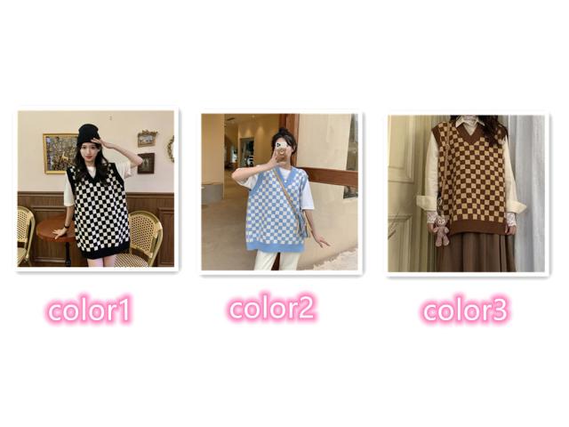 大きサイズ ニットベスト ノースリーブニット プルオーバーベスト ニット ベスト チェック柄 ニットトップス 袖なし ゆったり ニット 春 秋 冬