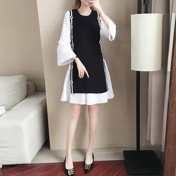 ワンピース レディース 春夏 長袖 ミニワンピース 切り替え 20代 30代 40代 ワンピース 二次会 結婚式 同窓会