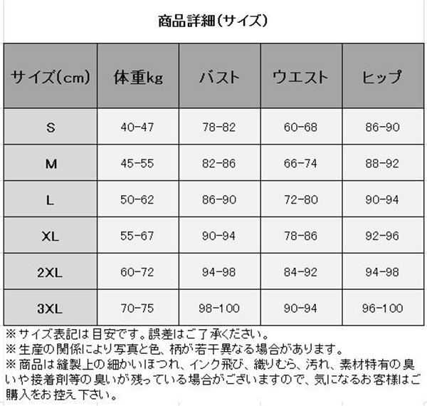 | サイズ | S M L XL 2XL 3XL |