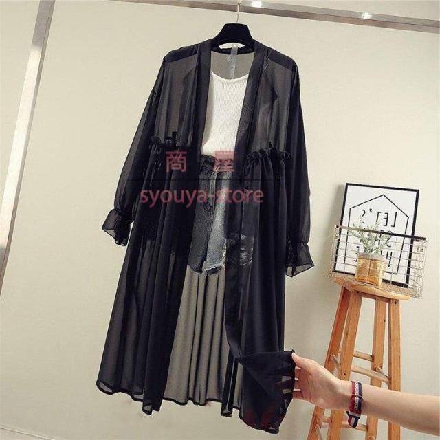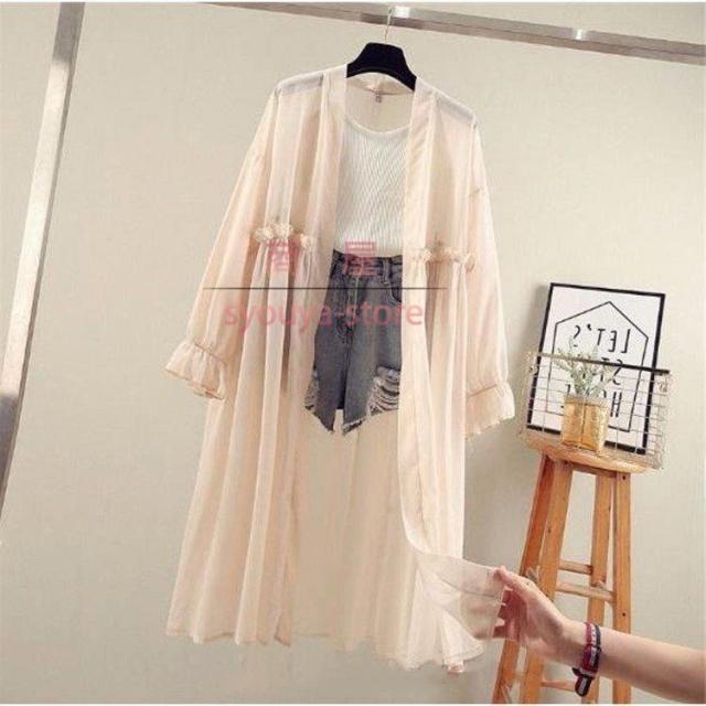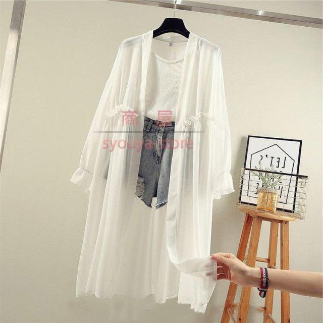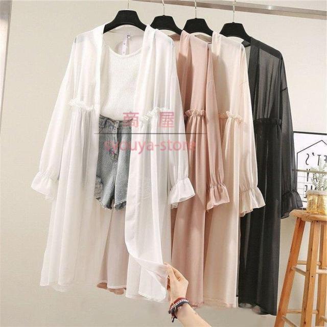 uvカットカーディガン レディース 春夏 薄手シャツ シフォンカーディガン ロング 長袖ガウン 紫外線カット ブラウス 冷房対策 ビーチウェア 透ける フェミニン