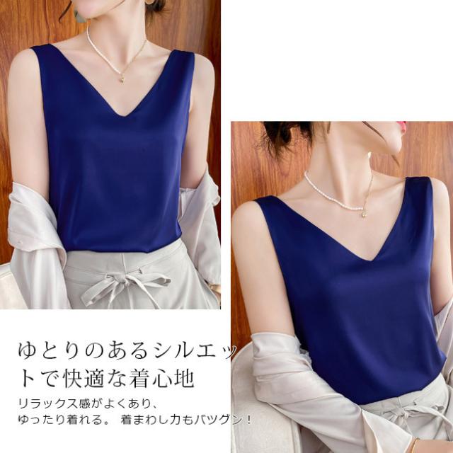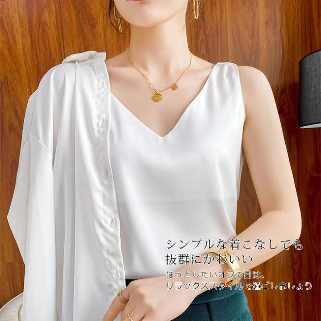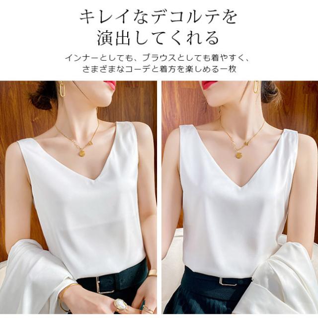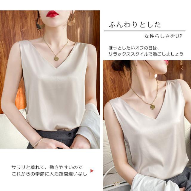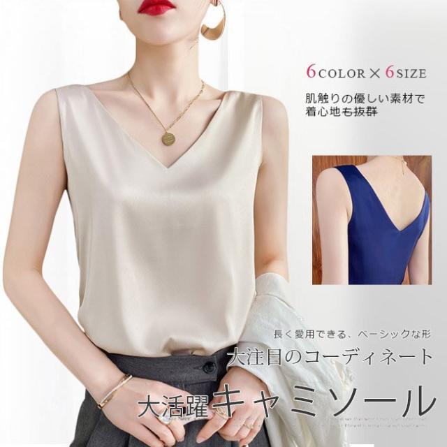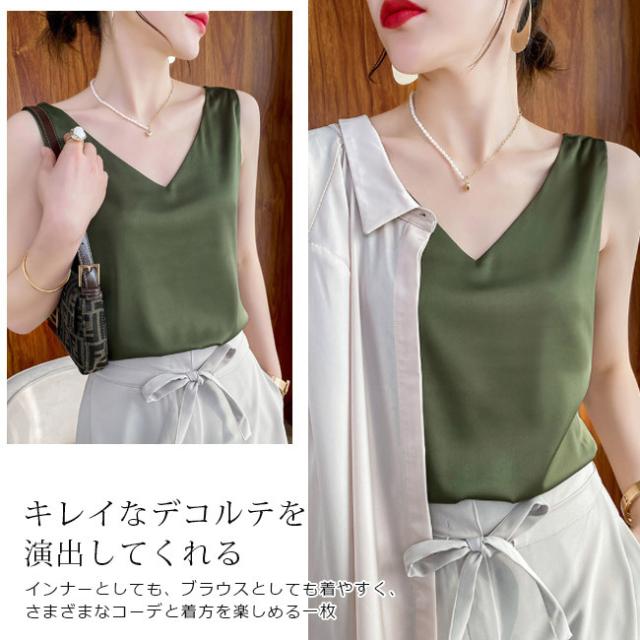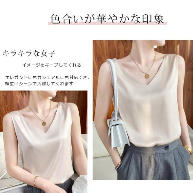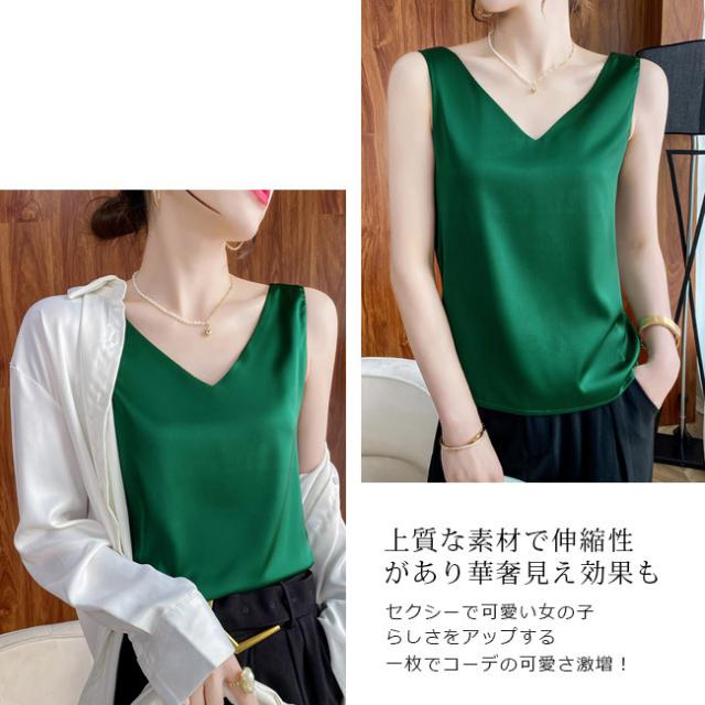 キャミソールレディース 重ね着 ショート丈 タンクトップ トップス キャミ ノースリーブ 見せるキャミソール 光沢感 高級感 冷感 涼しい おしゃれ Vネック