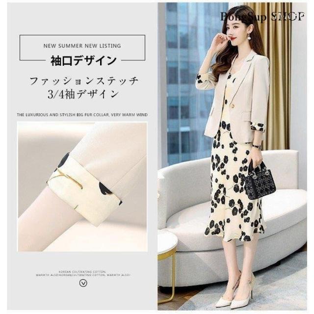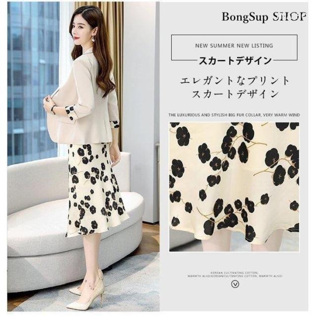 セットアップ レディース サスペンダースカート 花柄 ロング フリル スカート ジャケット 着痩せ 七分袖 エレガント セレモニー 結婚式 通勤 ママ 40代 秋