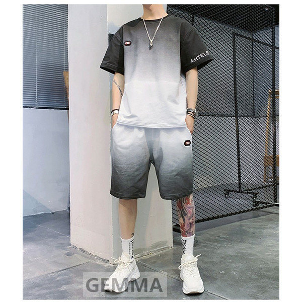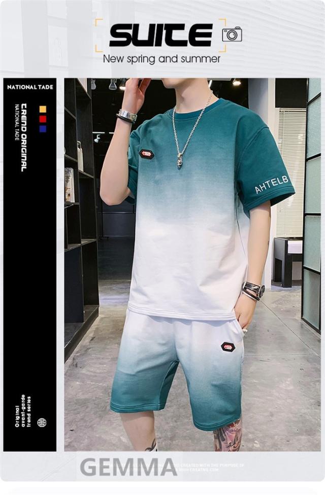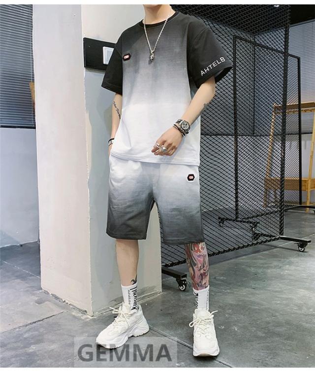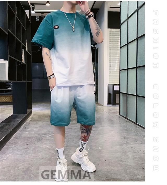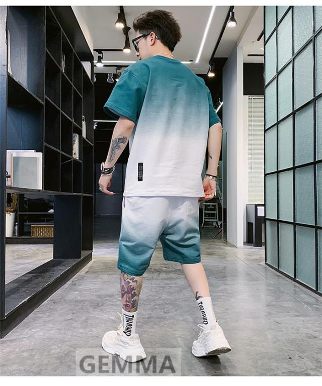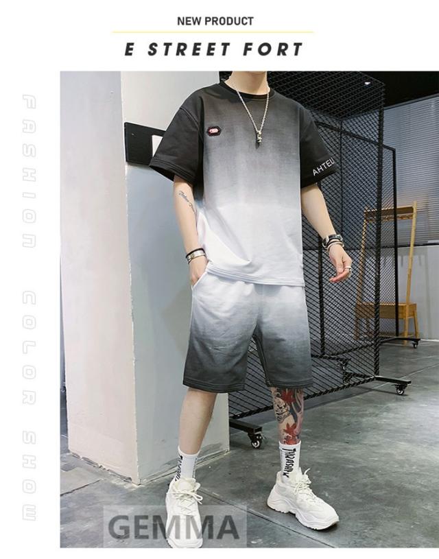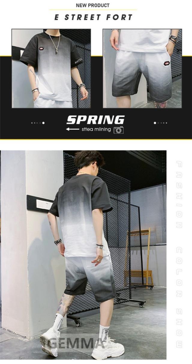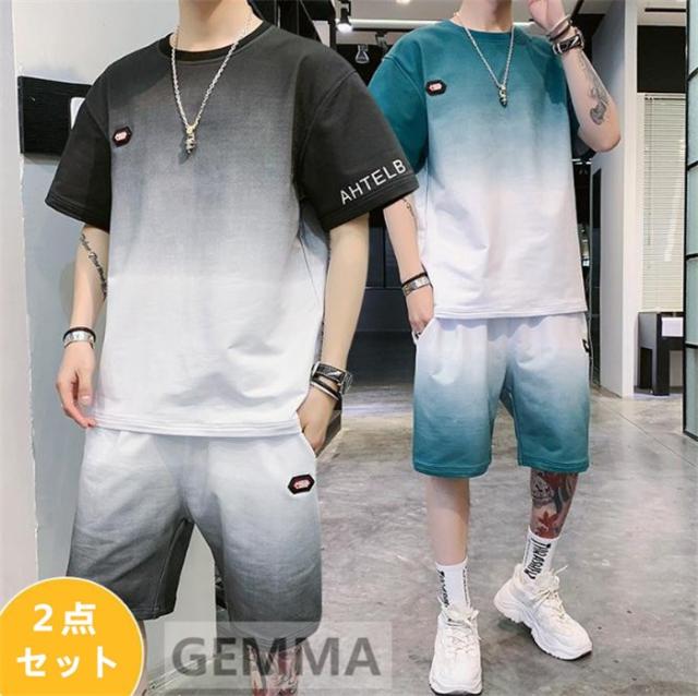 セットアップ 二点セット グラデーション メンズ 半袖Tシャツ ハーフパンツ ゆったり スウェット ショートパンツ 運動着 日常 夏物