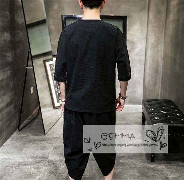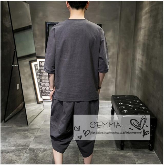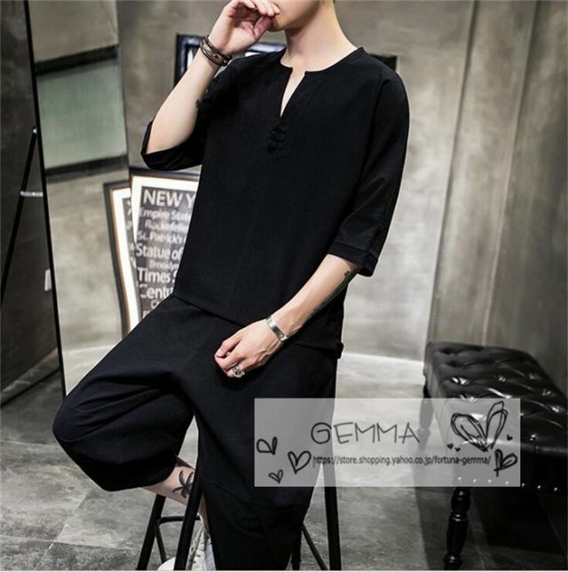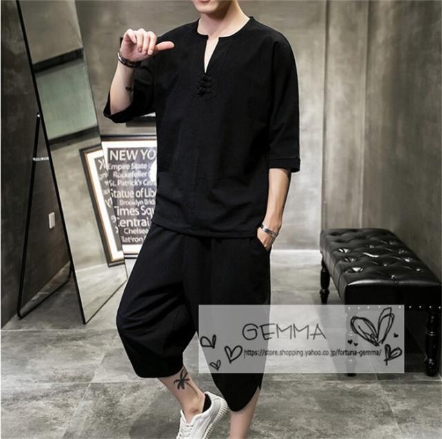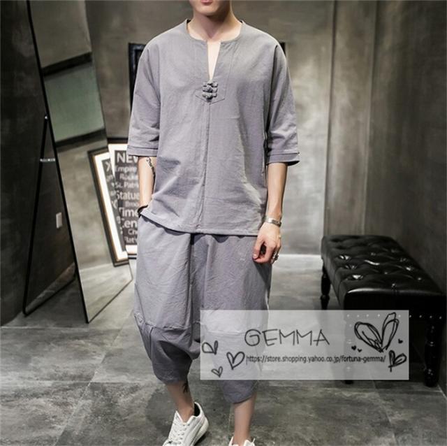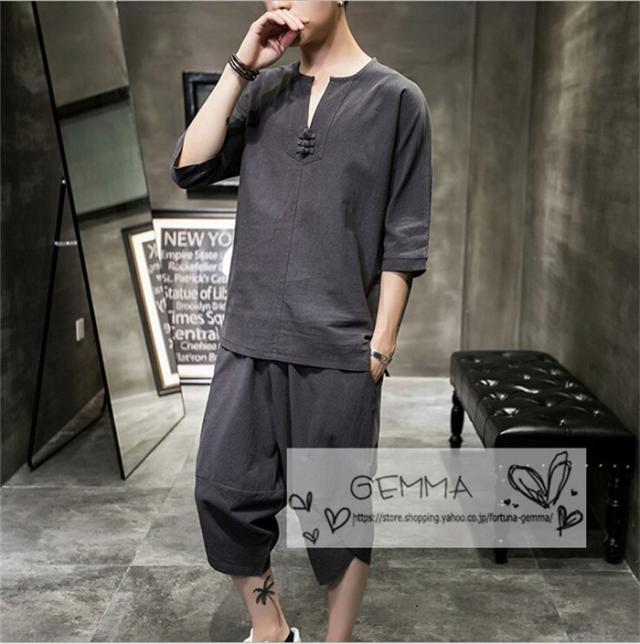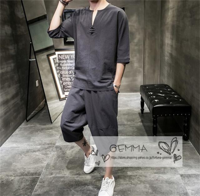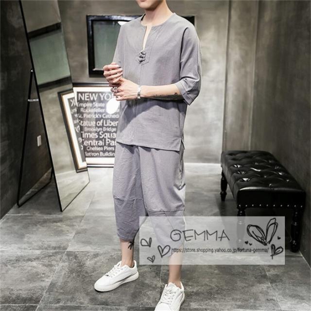 セットアップ メンズ 夏 リネン ジャージ 半袖 シャツ 上下セット スウェット 綿麻 部屋着 薄 男性 中国風 七分丈パンツ