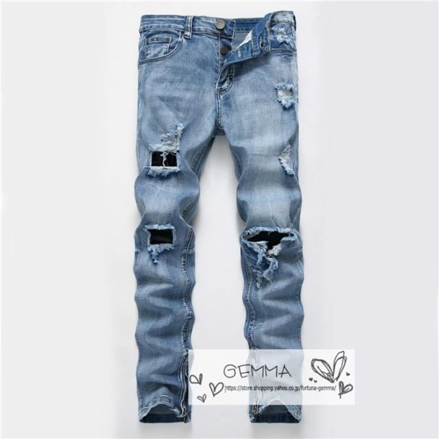デニムパンツ ダメージ加工 ジーンズ メンズ オシャレ ジーパン ロング JEANS ウォッシュタイプ スキニーパンツ 大きいサイズ