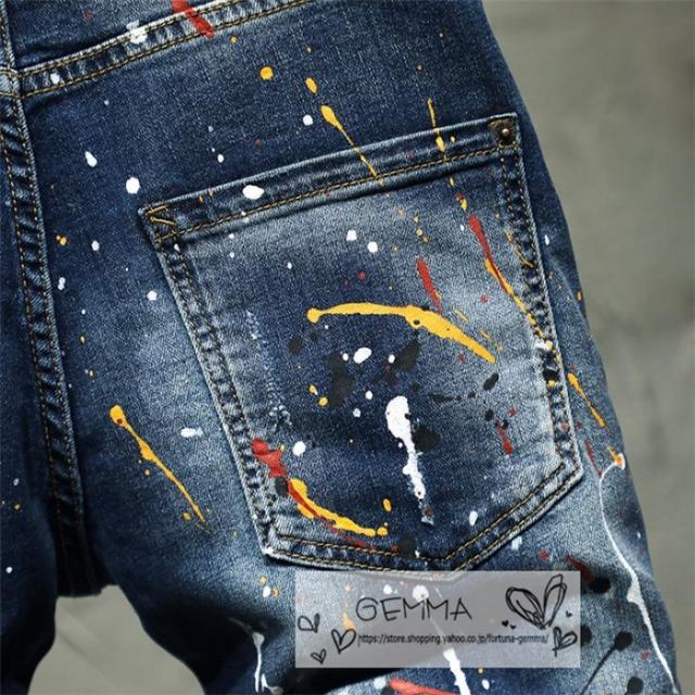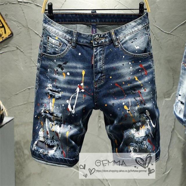 デニムパンツ ショート パンツ 半ズボン ダメージ加工 ハーフパンツ メンズ ショートパンツ デニム ジーンズ スリム ショーツ ハーパン ストレッチ 短パン