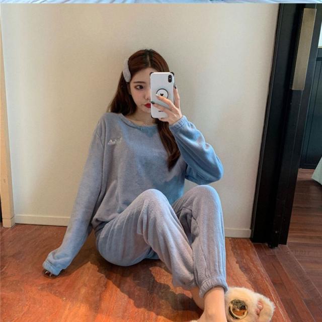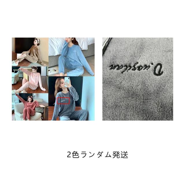 ルームウェア 上下セット 冬 ジャマ レディース 長袖 もこもこ 長ズボン マイクロファイバー 厚手 ゆったり 前開き あったかい 可愛い 秋 冬 部屋着 刺繍ロゴ メンズ シンプル モコモコ