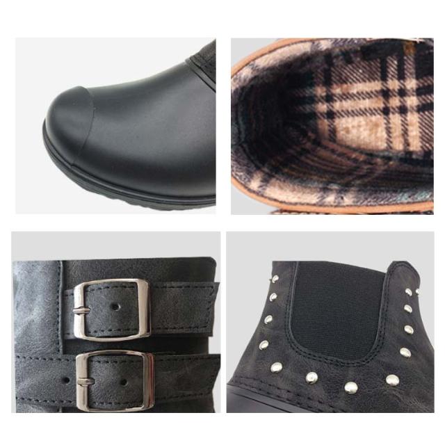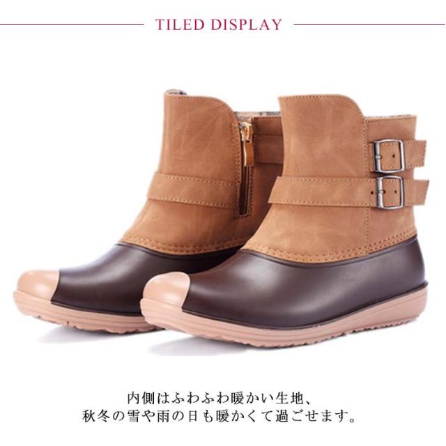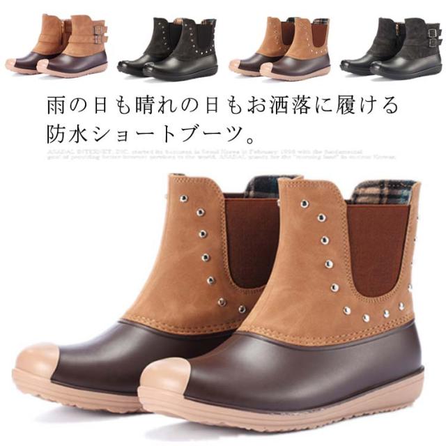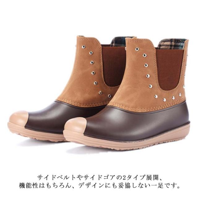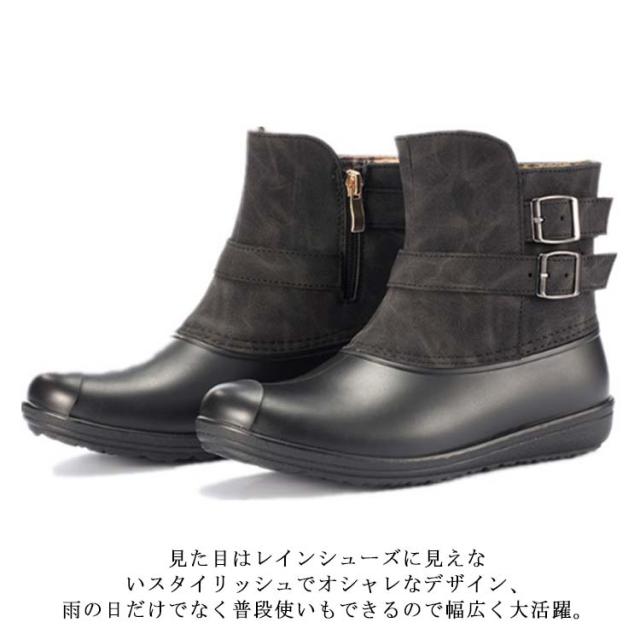 晴雨兼用 レインブーツ ショートブーツ レディース 裏起毛 暖かい 秋冬 防水 サイドゴア ベルト 防寒 防滑 ミドルブーツ レインシューズ
