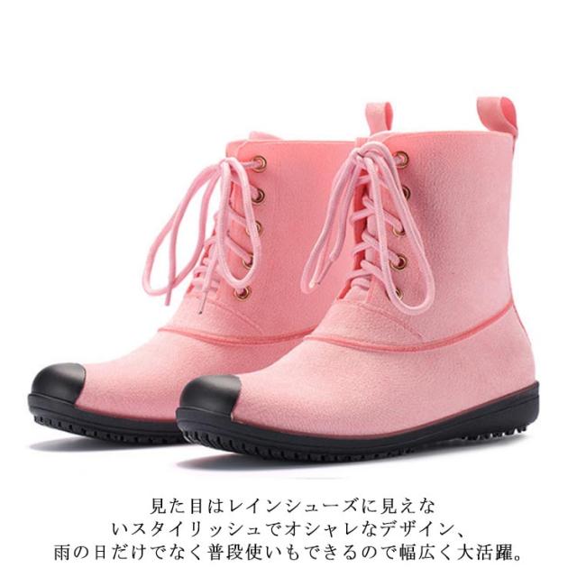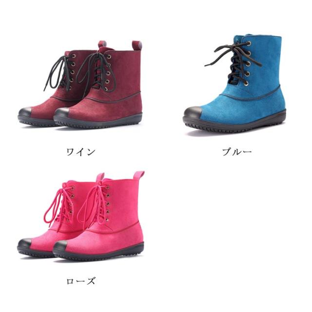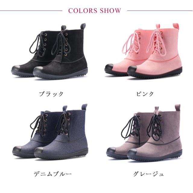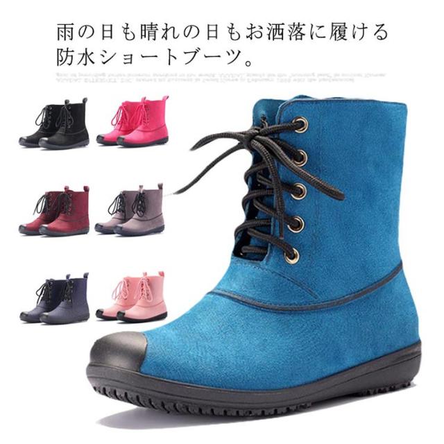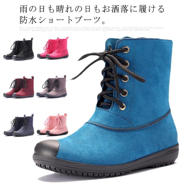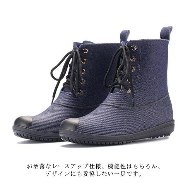 晴雨兼用 レインブーツ ミドル丈 レースアップ レディース 防水 ショートブーツ レインシューズ おしゃれ デニムブルー ラバーシューズ 雨靴