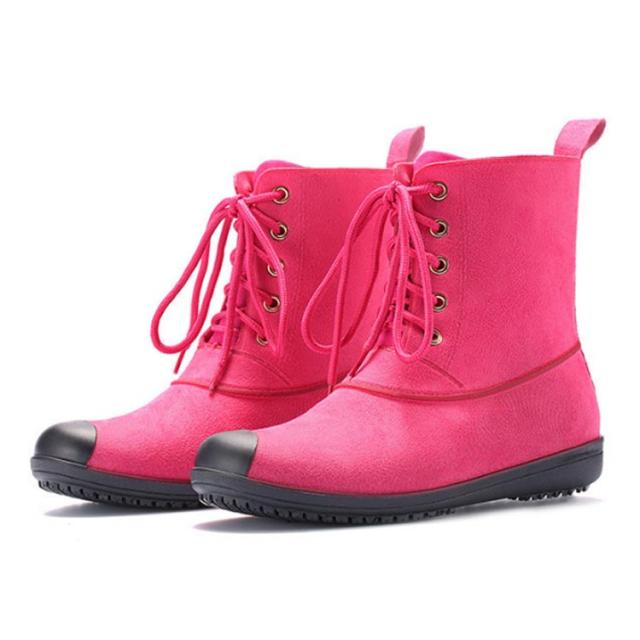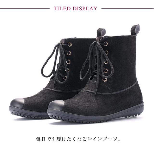 | 毎日でも履けたくなるレインブーツ。 雨の日も晴れの日もお洒落に履ける防水ショートブーツ。 見た目はレインシューズに見えないスタイリッシュでオシャレなデザイン、雨の日だけでなく普段使いもできるので幅広く大活躍。 お洒落なレースアップ仕様、機能性はもちろん、デザインにも妥協しない一足です。 | |