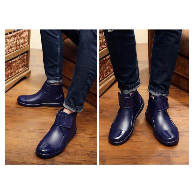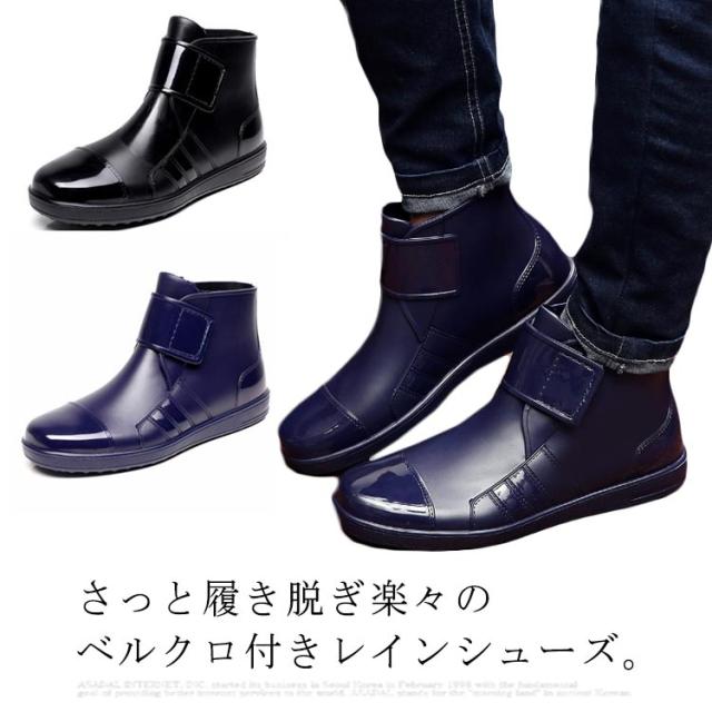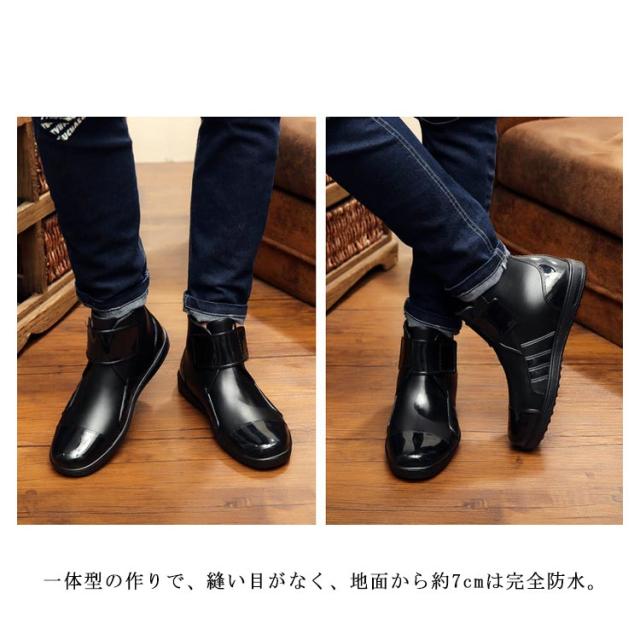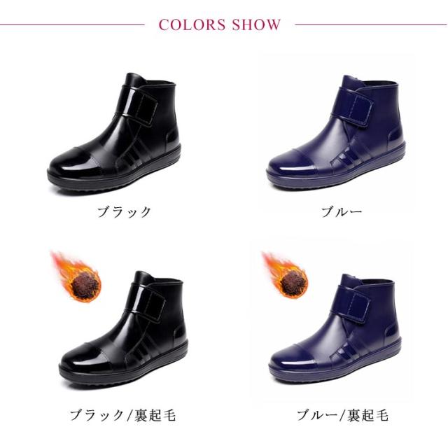 レインシューズ メンズ 長靴 スニーカー レインブーツ ショート丈 雨靴 マジックテープ 防水 お洒落 かっこいい ラバーシューズ 梅雨 裏起毛 雪 秋冬 春夏 防滑